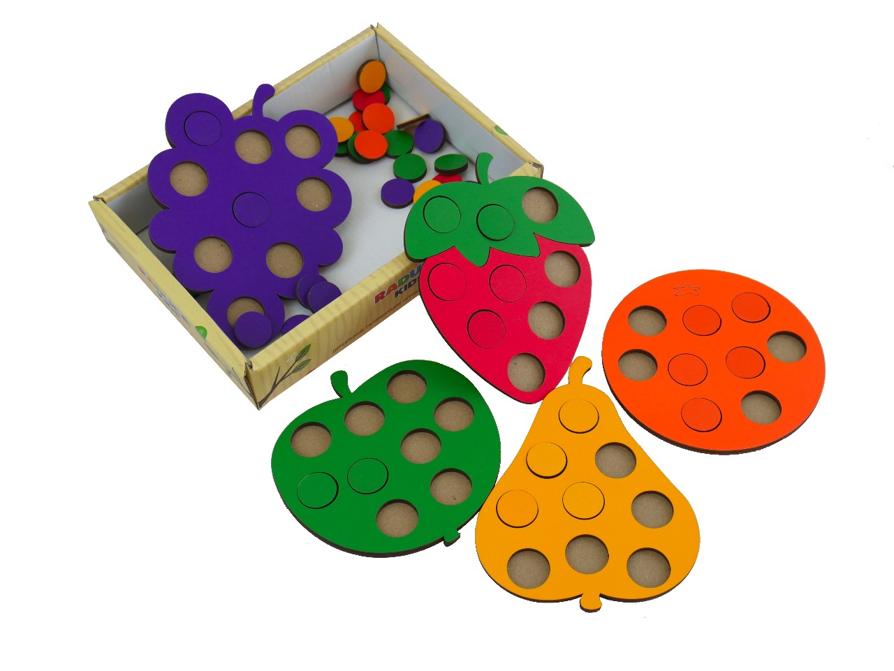 Главная > Каталог > Игрушки для раннего развития > Деревянные развивающие игрушки > Деревянная мозайка RadugaKids "Фрукты" RK1088