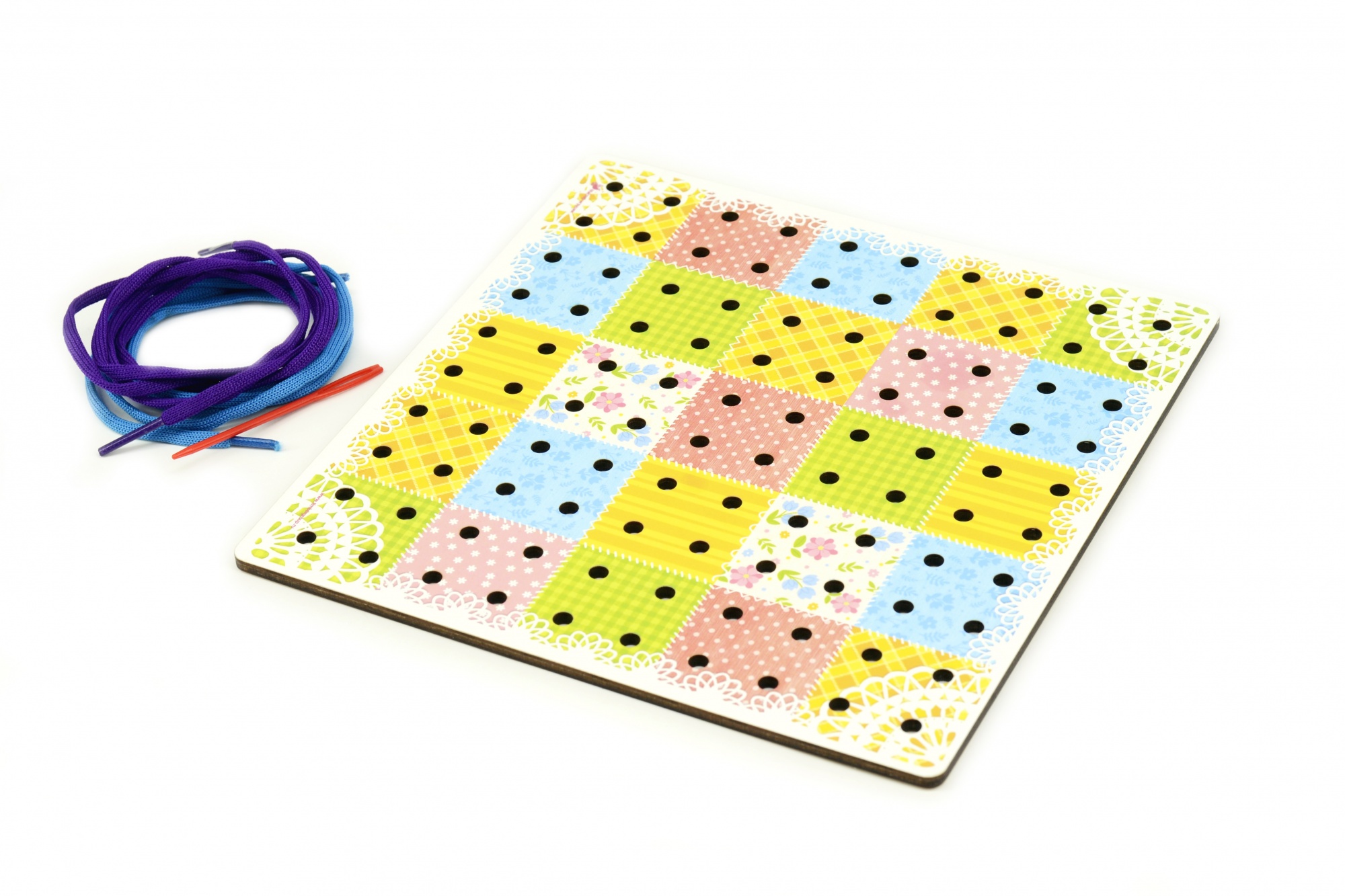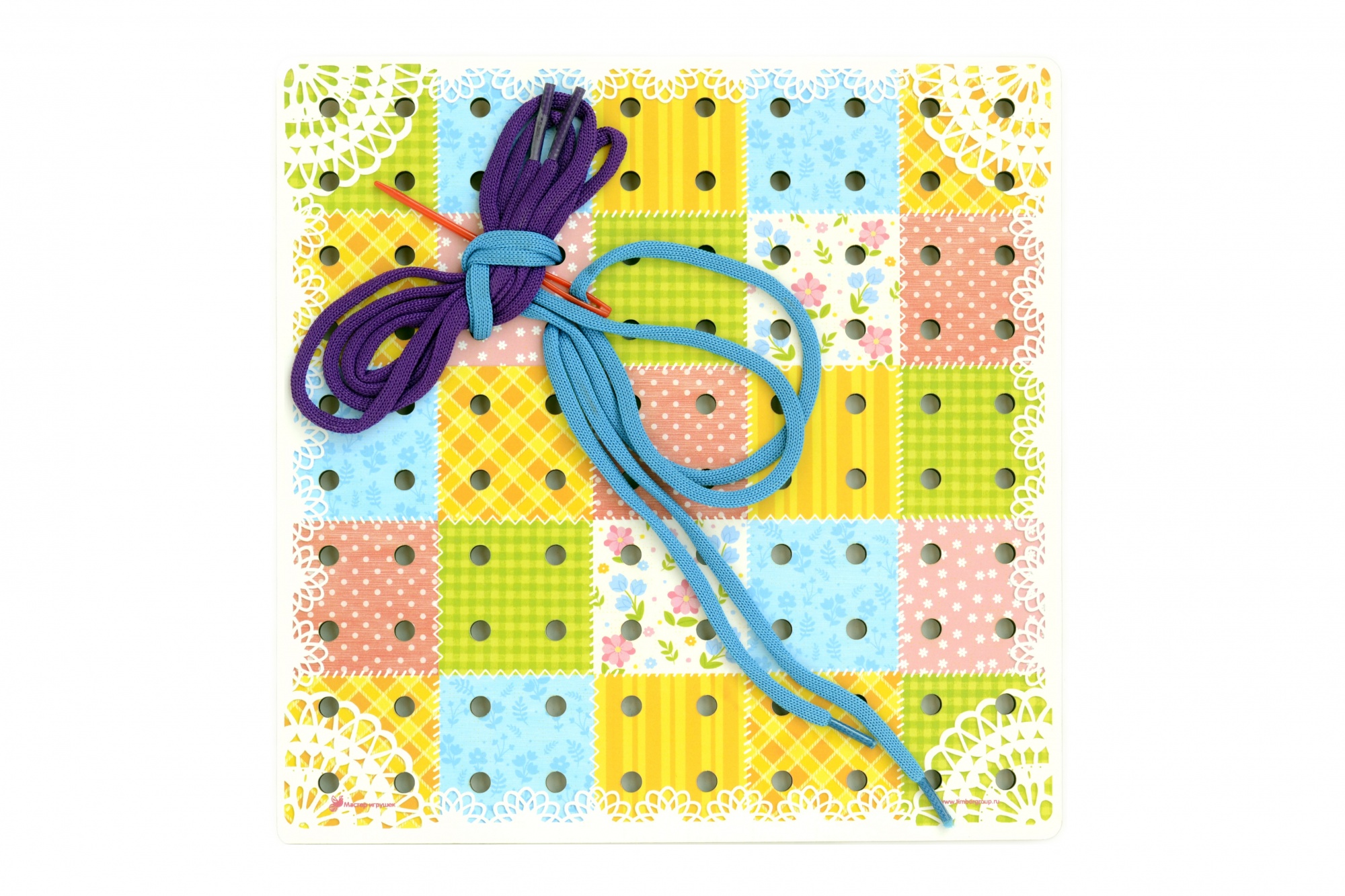 Главная > Каталог > Игрушки для раннего развития > Деревянные развивающие игрушки > Развивающая игра шнуровка "Иглоборд Лоскутки" IG0329