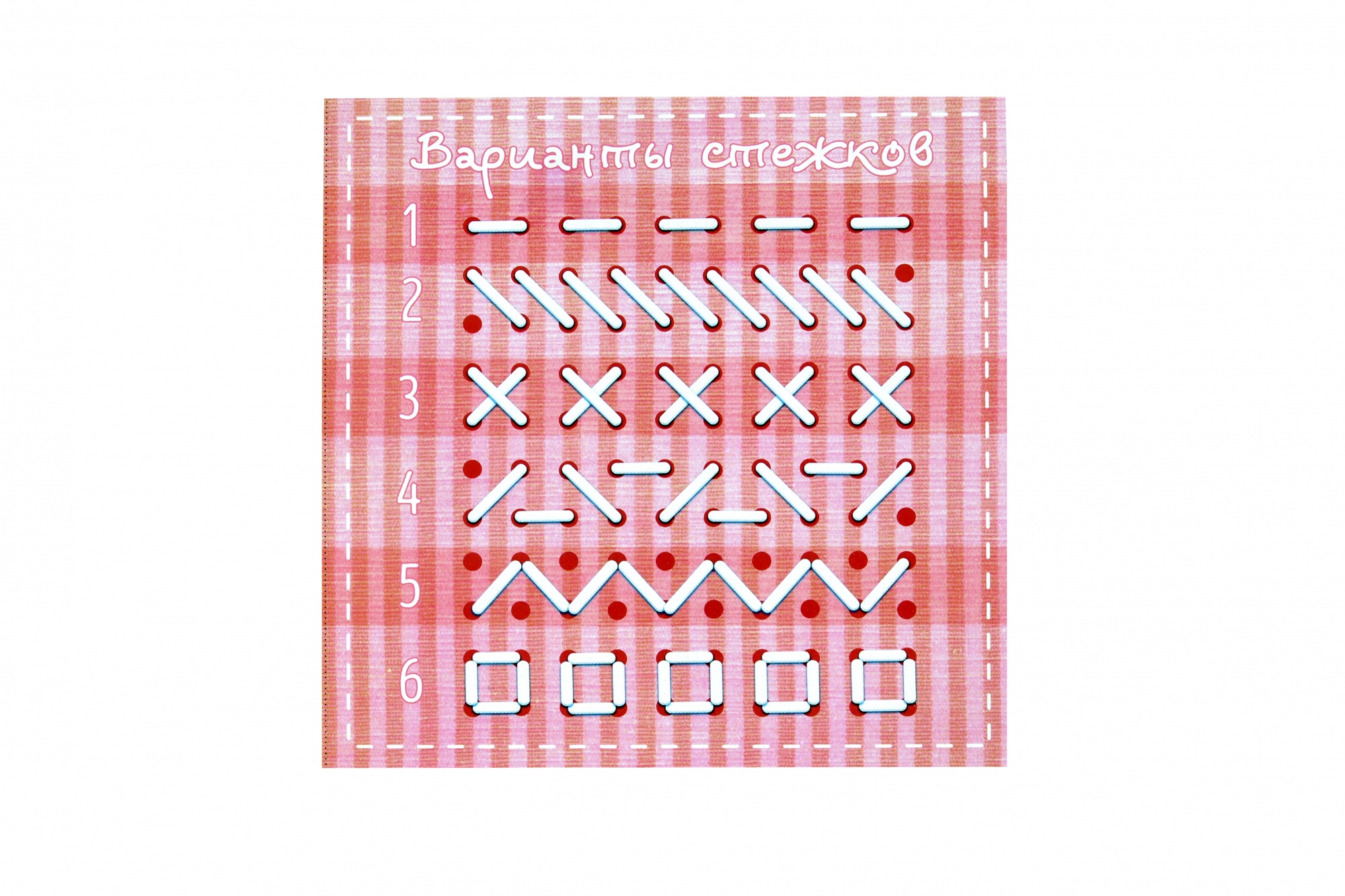Вначале нужно показать ребенку, как играть с этой игрушкой. Для этого вденьте нитку в иголку и повторите любой стежок изображенный на карточке несколько раз, комментируя свои действия – это поможет ребенку запомнить последовательность и позволит быстрее освоить навык шитья.