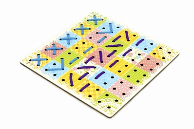 Эта игра поможет развить творческие способности и фантазию вашего малыша. Также игра поможет в изучении разных видов швейных стежков. Игрушка представляет собой доску с отверстиями, с помощью которой можно научиться различным видам стежков.