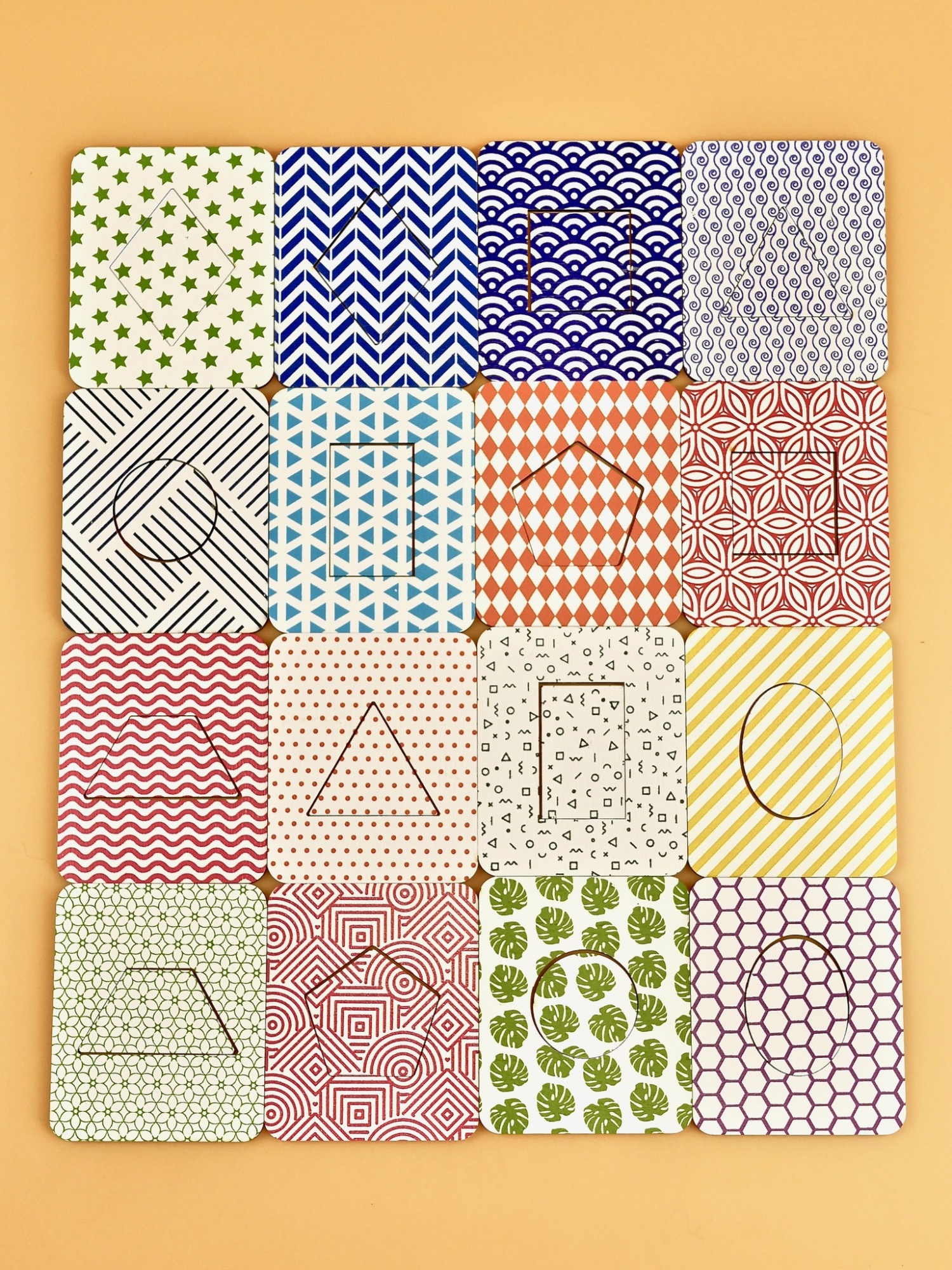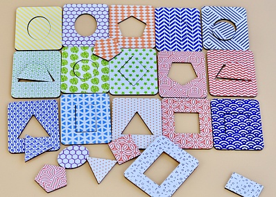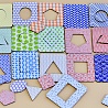 Игра усложняется разными цветными узорами — фигурку нужно вложить, учитывая узор.