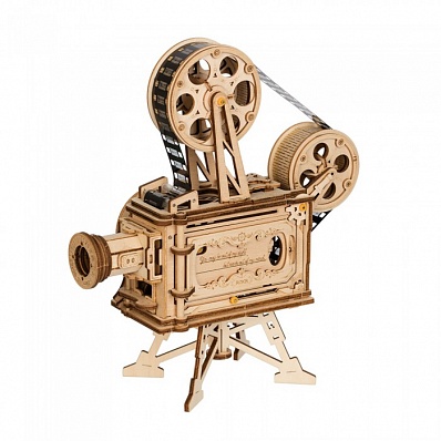 Состав набора: Составные части из фанеры, механизм с лампочкой, линза, катушка с пленкой.