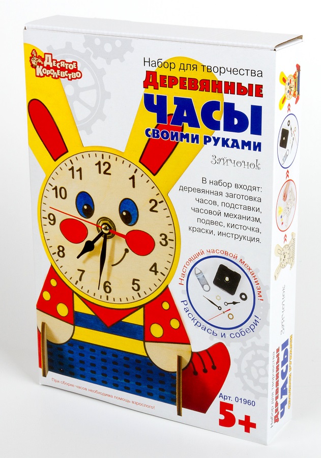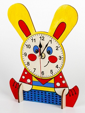 В любом возрасте дети стремятся узнать абсолютно все. Чтобы лучше понимать, окружающие вашего чада вещи, мы создали набор для творчества «Деревянные часы своими руками Зайчонок».
