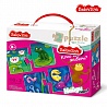 Собирая картинки, ребенок учится терпению, усидчивости, умению концентрировать внимание, доводить начатое дело до конца, сопоставлять контуры и цвета, разовьет мелкую моторику рук и наглядно-образное мышление. Подключитесь к игре и расскажите ребенку историю с персонажами, которых он собрал. Или пусть сам малыш сочинит и расскажет свою историю, при этом правильно раскладывая пазлы.