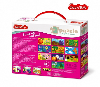 Они состоят из карточек с пазловым замком и предназначены специально для маленьких детей от 3 до 5 лет. Вашему малышу будет удобно брать большие детали в руки и самостоятельно собирать смысловые картинки, узнавая при этом кто где живет.