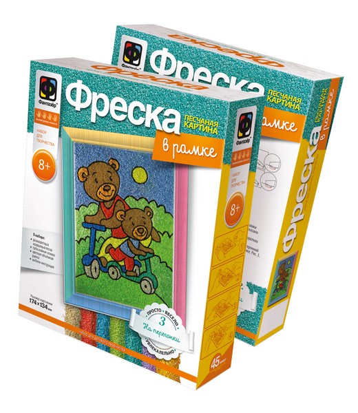 Песок насыщенных цветов, приятный на ощупь, не пачкает руки и не прилипает, песка много, можно использовать для других поделок. Основа для витража с углублениями, сделана из белого пластика, а рисунок прост в исполнении, детали крупные. В инструкции дано подробное описание процесса создания картины.