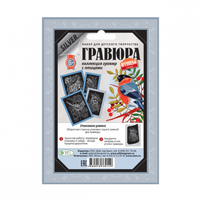Гравюра "Снегирь" от торговой марки Вайт энд Грин - это прекрасное занятие для досуга вашего ребенка. С помощью набора можно создать необычный рисунок. В комплекте для этого есть все необходимое: основа с нанесенным контуром, штихель и инструкция. Увлекательное занятие развивает усидчивость, внимательность, творческое мышление и фантазию. Небольшим, но приятным плюсом является то, что обратная сторона упаковки послужит рамкой для созданной ребенком гравюры. Полученный результат можно повесить в детской комнате или подарить друзьям.