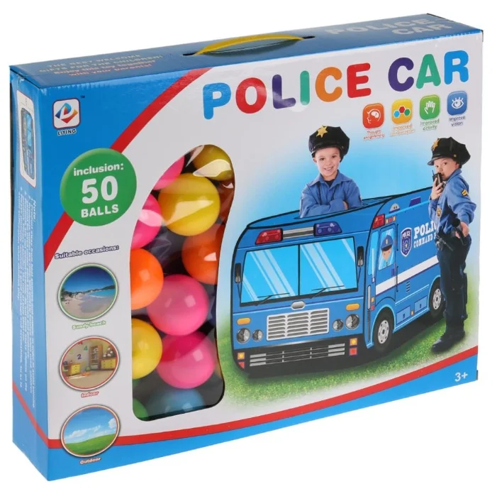 Главная > Каталог > Игровые наборы и фигурки > Игровы палатки манежи > Детская игровая палатка "Полицейская машина" + 50 шаров