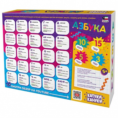 Еще никогда изучение Азбуки не было таким интересным. На каждую букву вы найдете сюрприз и небольшое задание. Изучайте алфавит и развивайте свои творческие способности. В этом наборе вы найдете легкий и шариковый пластилин, забавные игрушки, слаймы и другие необычные текстуры. Огромный набор с интересными играми, который будет полезен для развития и учебы ребенка.