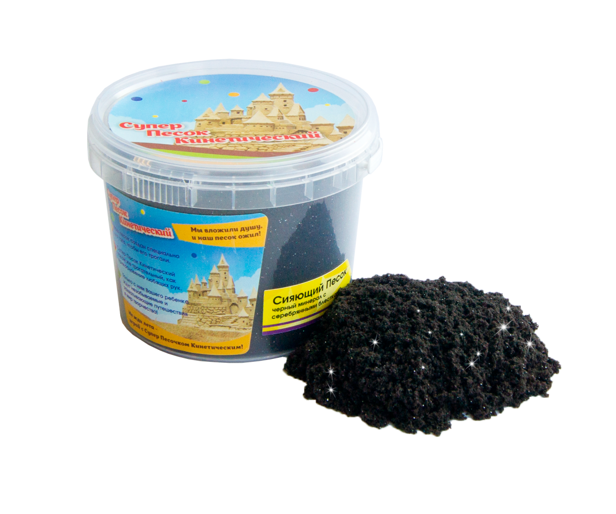 Главная > Каталог > Творчество > Кинетический песок > Кинетический Песок Сияющий черный с серебряными блестками 0,5 кг в ведерке