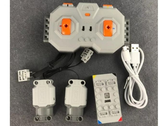 Внутри коробки вы найдёте 544 детали для постройки гусеничного экскаватора на радиоуправлении, которые совместимы с деталями Legо. Помимо деталей корпуса, в комплект входят пара электродвигатель, плата управления и аккумулятор в одном блоке, зарядное устройство и пульт!
