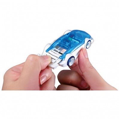 Игрушка приводится в движение при помощи специального топливного элемента на растворе соли. Все что потребуется — это легко и просто собрать модель из конструктора и капнуть немного соленой воды в специальный отсек.