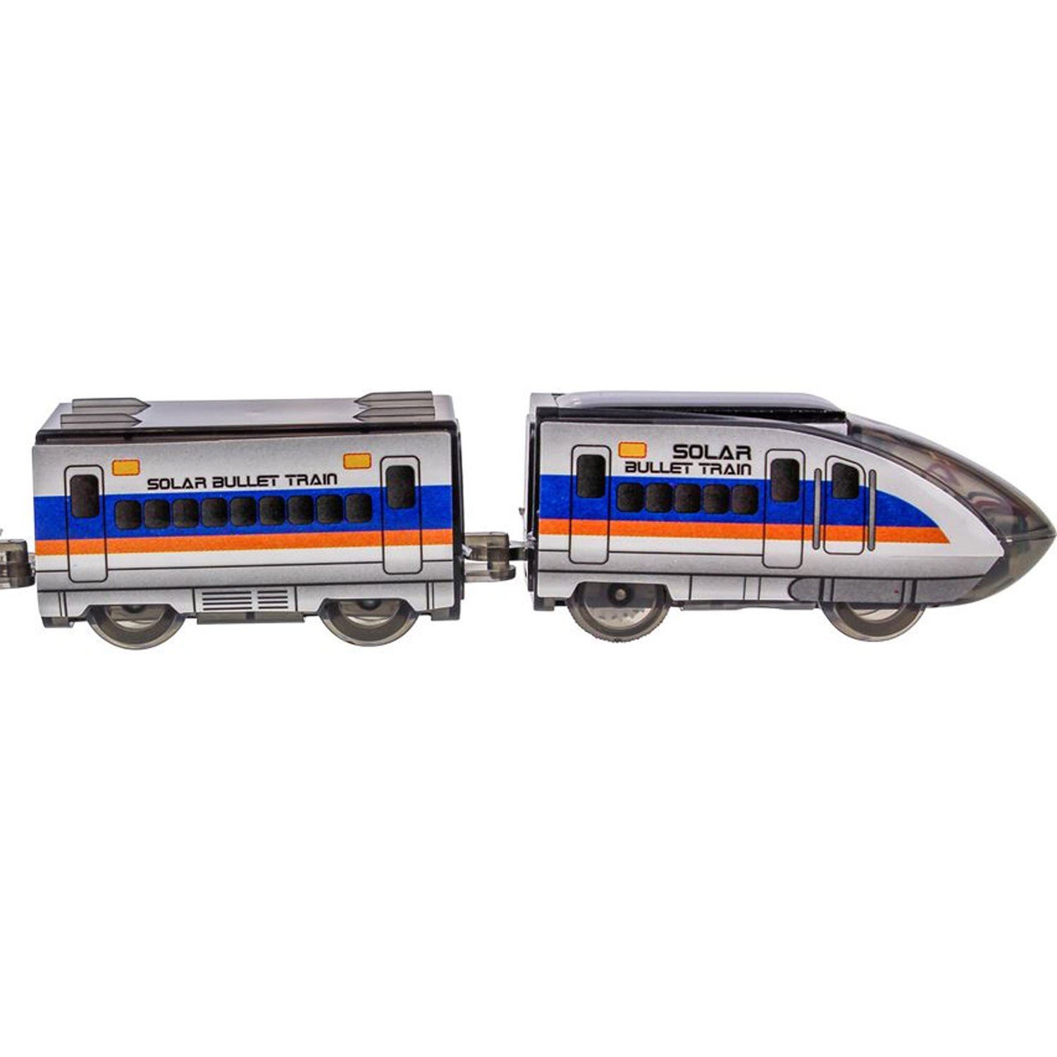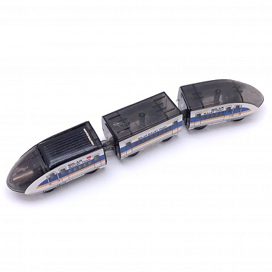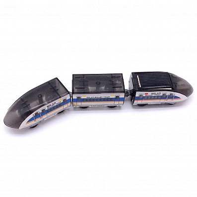 - Поезд приводится в движение электромотором от солнечной энергии, преобразованной в электрическую с помощью солнечной батареи. Дополнительно приобретать батарейки не требуется.