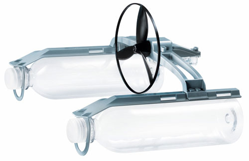 Как это действует? Батареи вырабатывают электричество для мотора, который заставляет пропеллер быстро вращаться. Лопасти пропеллера отталкивают воздух назад. По законам физики, каждой силе противостоит другая сила, действующая в противоположном направлении. Таким образом, когда пропеллер отталкивает воздух назад, воздух толкает пропеллер вперед. Это заставляет Супер Катамаран двигаться. Модель достаточно легкая, что позволяет пропеллеру быстро разгонять ее. Плавники лишь слегка погружены в воду, значит катамаран может легко скользить по воде.