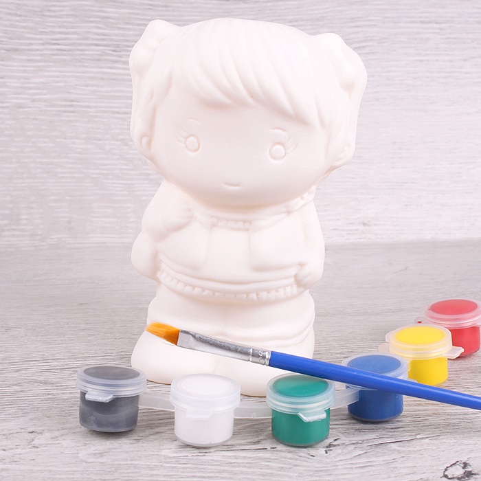 Копилка раскраска "Девочка" +6 красок, кисточка 9428