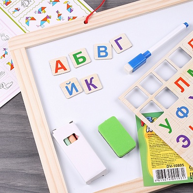 Доска для рисования Магнитно - маркерная двусторонняя 27*37см (доска, мелки, губка, магниты, маркер) DV-10805
