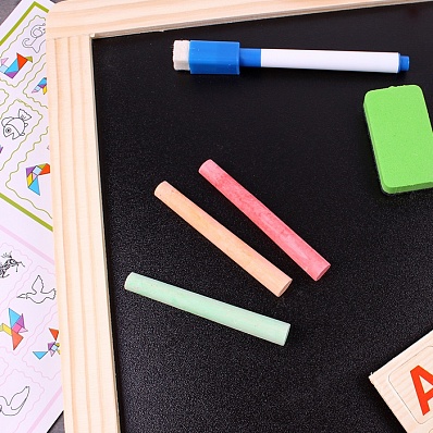 Главная > Каталог > Игрушки для раннего развития > Магнитные игры > Доска для рисования Магнитно - маркерная двусторонняя 27*37см (доска, мелки, губка, магниты, маркер) DV-10805