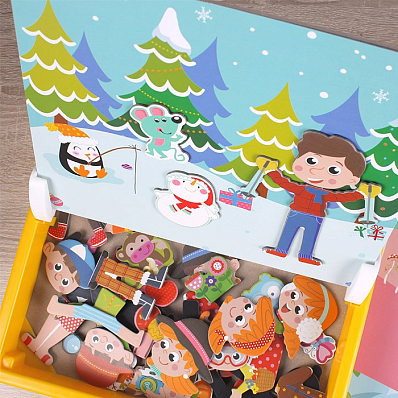 Набор "Путешественники" - это своеобразный магнитный конструктор, с помощью которого можно представить персонажей в различных ситуациях.