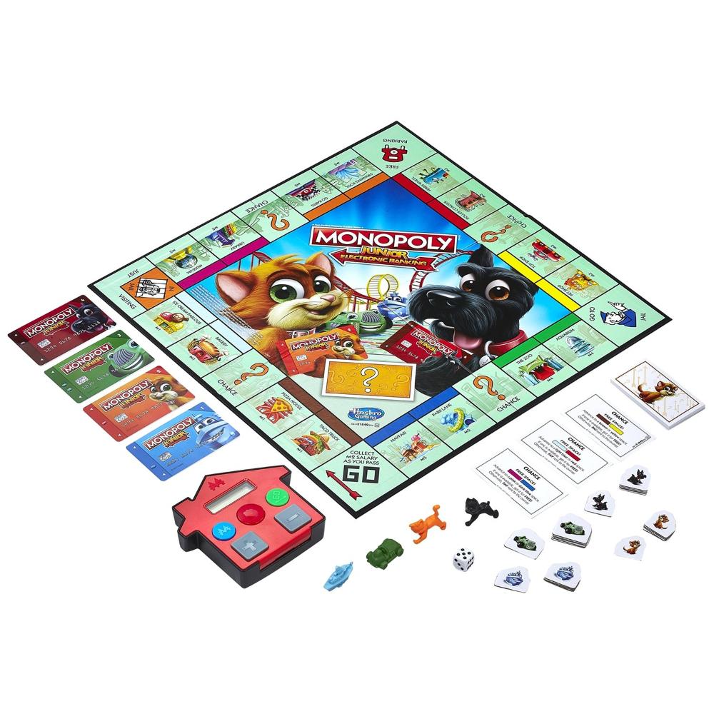 В этой детской версии всемирно известной настольной игры «Монополия» игровые деньги заменяются банковскими карточками.