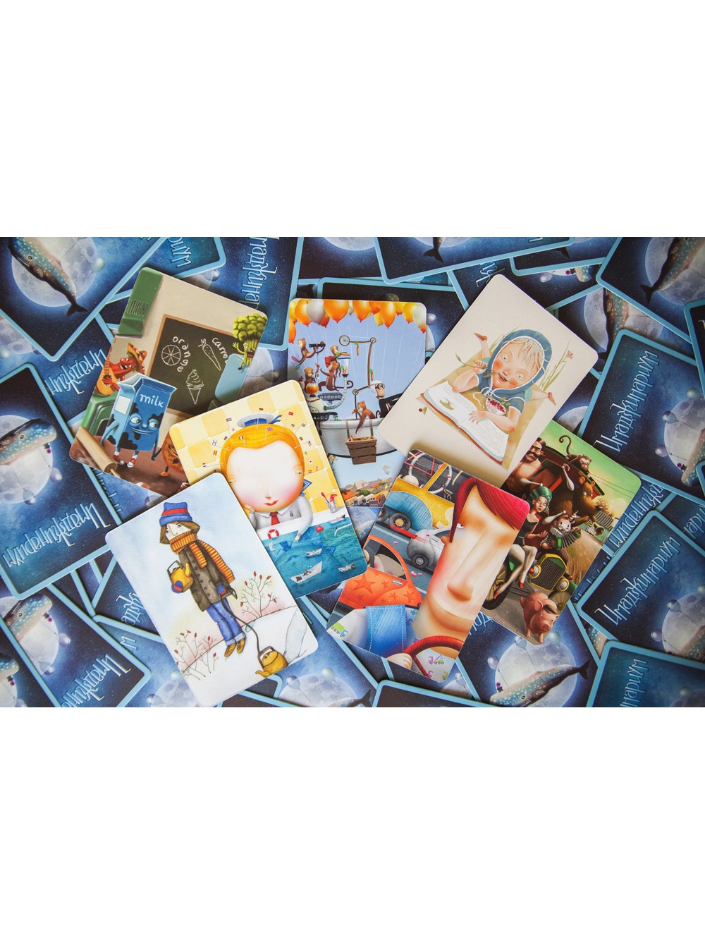 Самое главное отличие — это карты. Карты настольной игры «Имаджинариум. Детство» очень добрые, светлые с приятными детскими рисунками. Игрушечные утята, девочки-близняшки, осьминоги и зайчики, воздушные змеи и песочные замки. Смотришь на них и невольно улыбаешься!