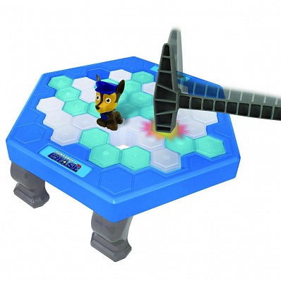 Не дай Гончику провалиться под лед! Игра по мотивам мультфильма "Щенячий Патруль". Милый, добрый и увлекательный мультфильм повествует о шести отважных щенках-спасателях, которые защищают жителей Бухты Приключений от различных напастей. Представляем вашему вниманию превосходный игровой набор «Не урони Гончика».По правилам игры участники крутят рулетку. После этого стрелочка укажет на один из четырех возможных секторов: светлая льдинка; темная льдинка; льдинка на выбор; пропусти свой ход. Когда игроку выпадает льдинка, он должен взять молоточек-ледокол и аккуратно выбить подходящую льдинку так, чтобы не уронить с поля фигурку Гончика.