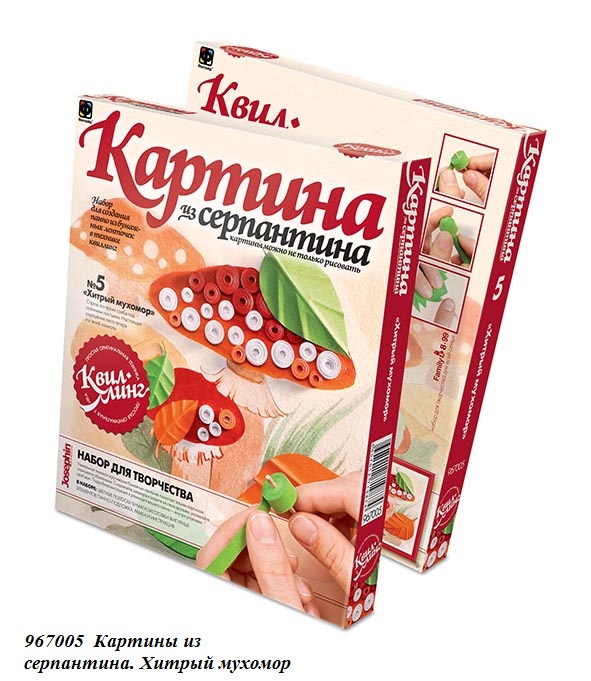 Картина из серпантина "Хитрый Мухомор" поможет вам создать оригинальную картину из бумажных ленточек, используя специальную технику бумагокручения — квиллинг. В наборе есть акварельный рисунок, который необходимо дополнить объемными элементами, цветные полоски бумаги, заготовки фигурных элементов, рамку, два стика и клей.