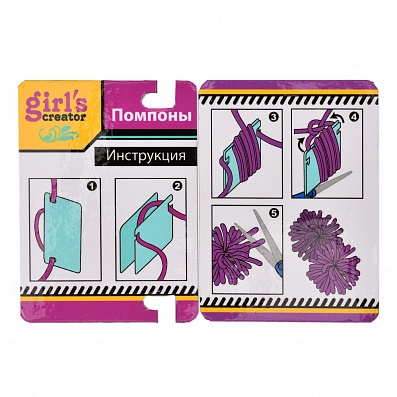 - Набор позволяет связать 6 разных аксессуаров: шапочку, резинку для волос, бант, шарф, браслеты, шарф с помпонами.