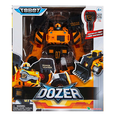 Тобот Доузер - 2 в 1: робот с подвижными конечностями и мощной броней превращается в бульдозер с большим ковшом-лопатой. Робот может самостоятельно стоять. В комплекте имеется ключ, который можно установить на корпус тобота.