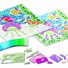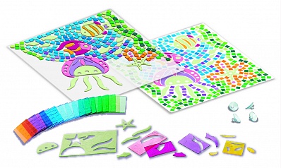 В наборе: - более сотни полупрозрачных прямоугольных элементов мозаики разных цветов; - элементы мозаики разной формы для переднего плана; - элементы мозаики разной формы, светящиеся в темноте; - 1 шаблон; - 1 прозрачная основа для мозаики; - 4 присоски; - подробная инструкция на русском языке.