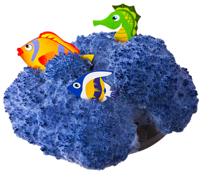 После выращивания коралла в него предлагается вставить фигурки морских обитателей.