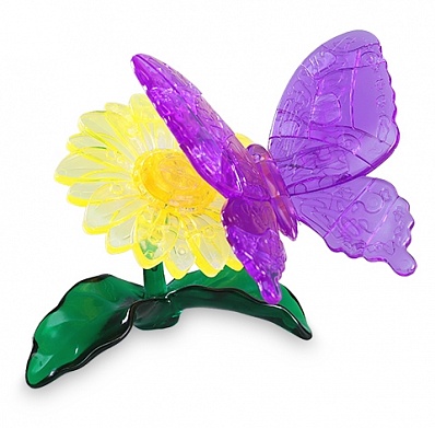 Бабочка из полупрозрачного пластика села на цветочек. Детали трех цветов, интересный дизайн - эта головоломка должна стать лидером продаж. Бабочка собирается отдельно и крепится на цветок.