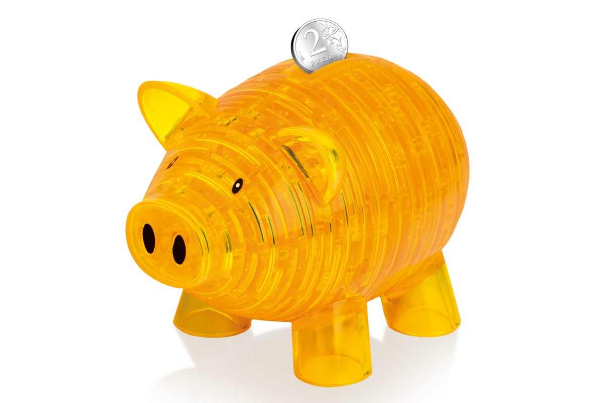 Собирать ее непросто, зато в результате у вас получится настоящая копилка! В спинке хрюши – прорезь для монет или купюр. С помощью этой головоломки у вас будет неплохой шанс скопить немного наличных.