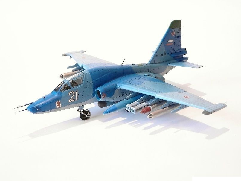 Этот самолет является дальнейшим развитием известного советского штурмовика Су-25 и предназначен для использования в качестве истребителя танков.