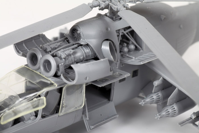 Бронеплиты были установлены и на капотах двигателей. Вертолет получил двигатели и редуктор от хорошо зарекомендовавшего себя и надежного транспортного Ми-8. Вооружение на первой модификации состояло из пары ПТУР 9М17 противотанкового комплекса «Фаланга-М» с ручной системой наведения, подвижной установки НУВ-1 с крупнокалиберным пулеметом, блоков неуправляемых ракет или бомб.