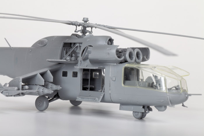 Историческая справка: Вертолет Ми-24А стал первой в мире «летающей БМП». Он не только перевозил 8 человек десантников, но и имел мощное бортовое оружие и надежную броневую защиту. Опытный экземпляр этого вертолета взлетел летом 1969 г., а уже в 1970-71 гг. Ми-24А начали поступать в войска. Пилот и оператор бортового комплекса вооружения защищались боковыми броневыми листами, лобовым пуленепробиваемым стеклом и бронированными сиденьями.