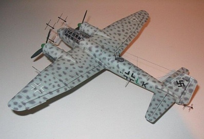 Историческая справка: Модификация Ju-88 G6 представляла собой дальнейшее развитие тяжелого ночного истребителя на базе бомбардировщика Ju-88. На истребителе устанавливалось новейшее радиоэлектронное оборудование для поиска цели, а мощное вооружение, состоящее из "Schrage musik", пушек MG 151 /20 и пулемета MG 131 оставляло самолету врага не много шансов скрыться. Так в ночь с 16 на 17 марта 1945 года Эрих Юнг в небе Нюрнберга на своем Ju-88 G6 уничтожил 8 британских бомбардировщиков за 20 минут боя.