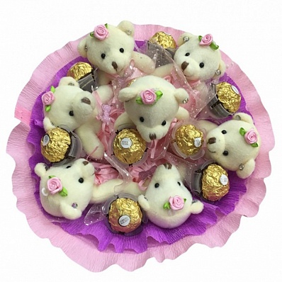 Букет из мягких игрушек с держателями для конфет 7M5KONF