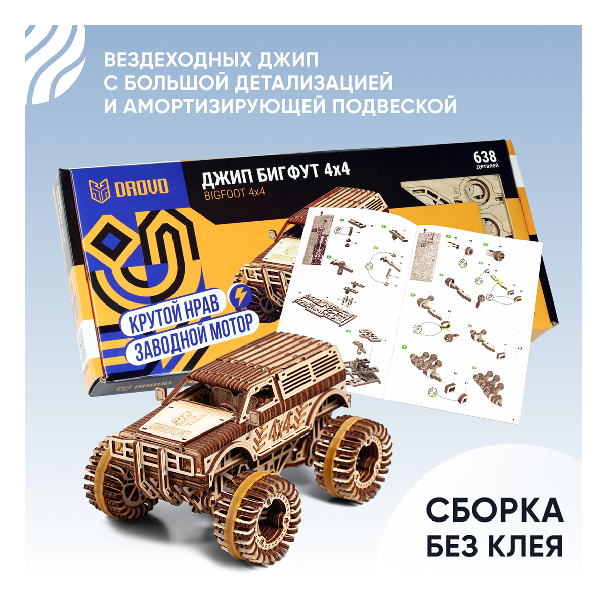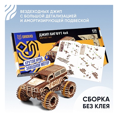 Главная > Каталог > Конструкторы > Деревянные конструкторы > Деревянный конструктор Автомобиль Джип БигФут 4x4