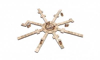 Механический конструктор, сборная 3D-модель. Вариация игры в домино под названием «Мексиканский поезд».