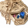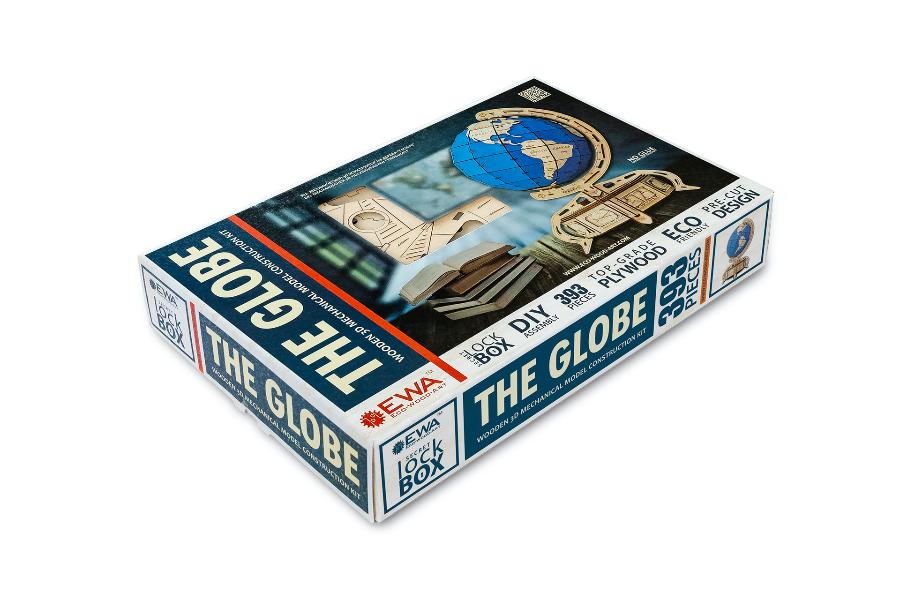 Стороны света, роза ветров, градуированная подставка, основные характеристики планеты – нанесены на элементы конструкции. Глобус оборудован секретной нишей. При вращении определенных шестерен открывается доступ к механическому элементу внутри конструкции, который при нажатии дает возможность выдвинуть потайное отделение. Размер потайного отделения: 210*140*65 мм.