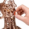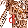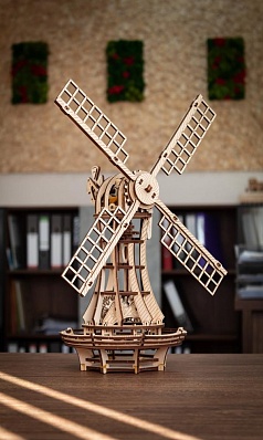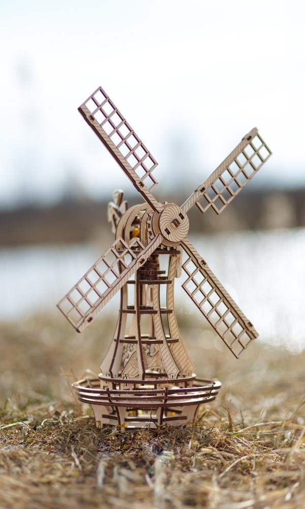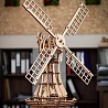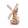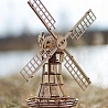 Механический деревянный конструктор Ветряная мельница от EWA Eco-Wood-Art. Модель имеет заводной механизм поворота парусов на резинке и механизм открывания в башне.