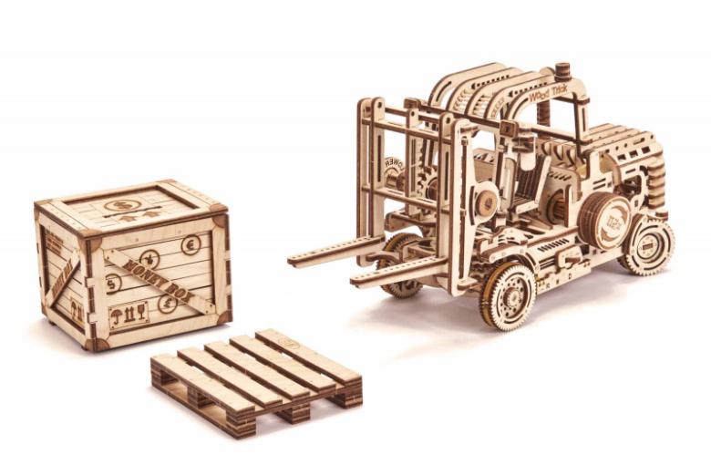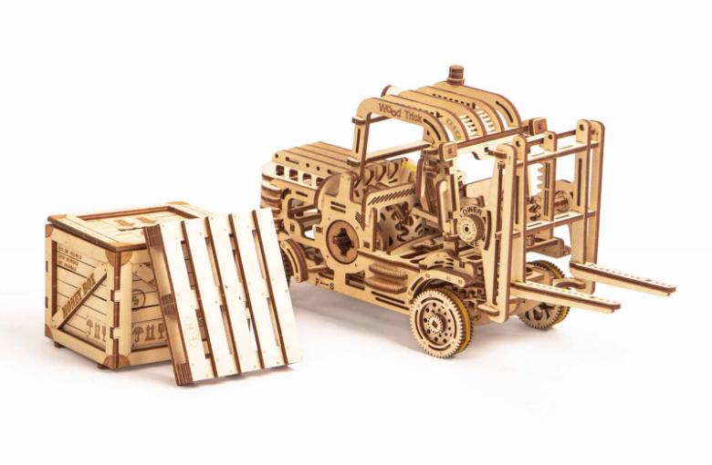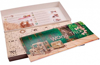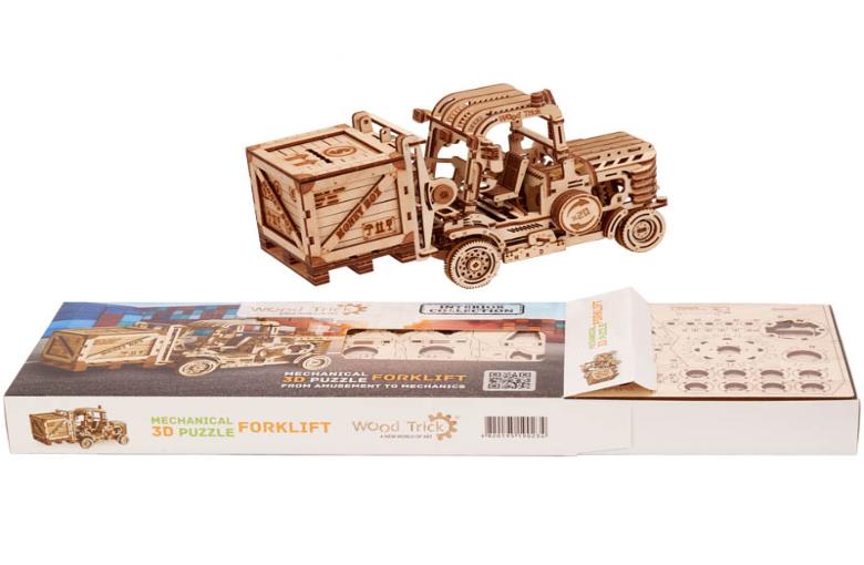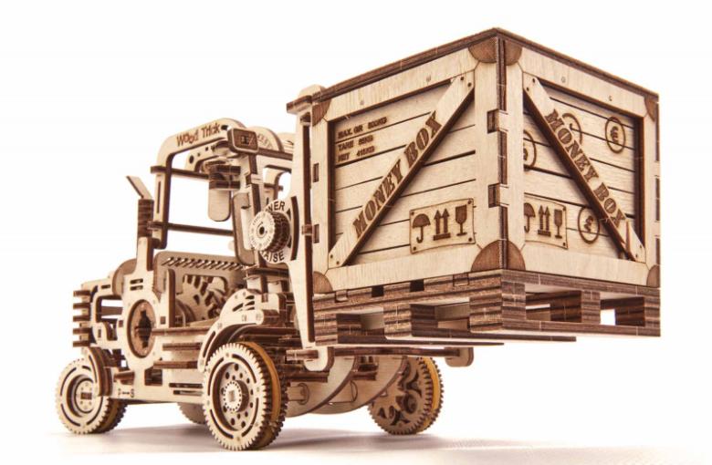 "Погрузчик" вместе с дополнениями поддон и копилка станет отличным вариантом подарка и украшением вашего дизайнерского пространства. Конструкторы "Wood Trick" также интересны и детям, которые любят собирать их со взрослыми и безопасно играть.