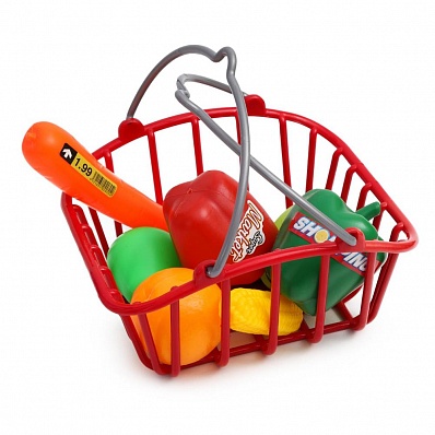 - В большой набор входит более 20 игрушечных продуктов. Можно закупиться как следует!