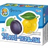 Игра предназначена для детей младшего возраста (3+). Крупные элементы удобны для ручки малыша. В коробке 6 контурных пазлов (виноград, лимон, яблоко, бананы, слива и груша). Четыре из них состоят из 2 частей, а два из 3 частей. Всего 14 элементов. Размер каждой картинки, состоящей из трех частей примерно от 15 см до 19 см, а состоящей из двух от 8 см до 11 см. Пазлы изготовлены из плотного картона, хорошо держат форму.
