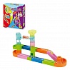 В комплекте для увлекательной сборки маленькие первооткрыватели найдут разноцветные вертикальные трубочки, горки, открытые прямые и изогнутые желобки, подставки.