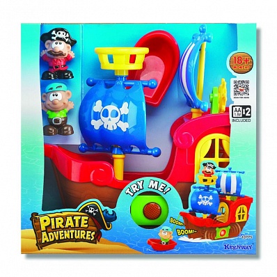 Комплектация: две фигурки пиратов, корабль, шлюпка, батарейки.