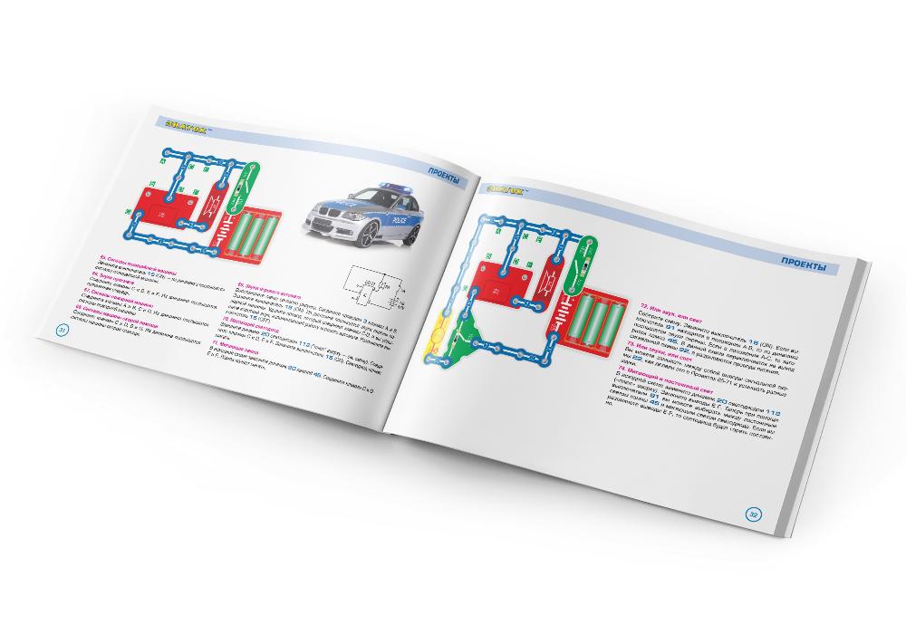 В комплектацию данного набора входит «Руководство пользователя» и детали, необходимые для выполнения предложенных в руководстве проектов. Руководство с описанием схем располагается в коробке под прозрачной монтажной платой. Нижняя часть коробки вместе с деталями и книгой запечатана в полиэтиленовую плёнку.