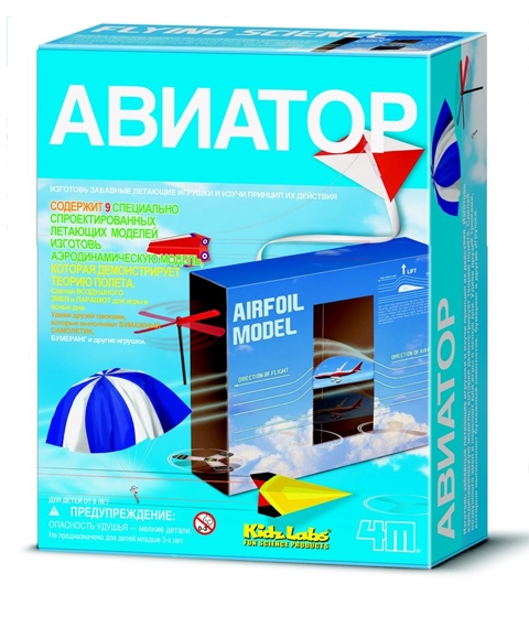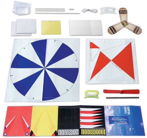 Набор содержит 9 специально спроектированных летающих моделей. Изготовь забавные летающие игрушки и изучи принцип их действия. Изготовь аэродинамическую модель, которая демонстрирует теорию полета. Сделай воздушного змея и парашют для игры в ясные дни. Удиви друзей трюками, которые выполняют бумажный самолетик, бумеранг и другие игрушки.