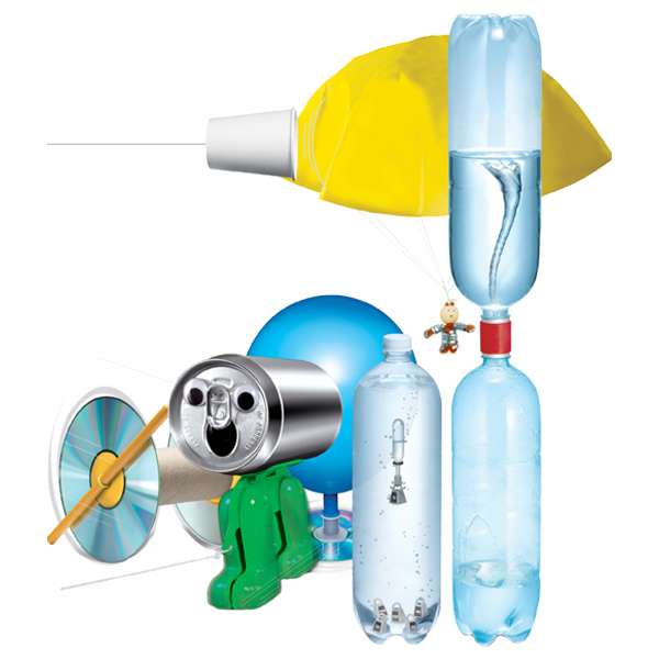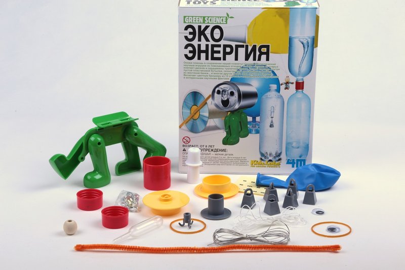 7 научных опытов в одном наборе! Делаем парашютиста, гравитационного робота, торнадо в бутылке, летающий диск и многое другое. Главная особенность набора – все материалы для экспериментов являются бытовыми отходами, которые мы обычно выбрасываем в мусор. Эксперименты показывают, что для отработанных вещей есть и лучшее применение, которое не отравляет окружающую среду.