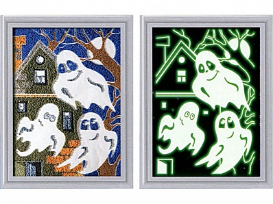 "Волшебная фреска" получила еще одно чудесное качество - теперь она светится в темноте! Светящаяся картина, которую можно сделать своими руками, обязательно понравится вашему малышу! Простая техника изготовления, интересный сюжет и необычные материалы сделают творческий процесс веселым и увлекательным. Малыш будет усердно трудиться над своим первым шедевром, попутно овладевая полезными навыками. А ночью с его картиной начнут происходить необыкновенные вещи! Небо из дневного станет ночным, окошки в домах зажгутся, месяц будет освещать не только картину, но и комнату волшебным синим светом.